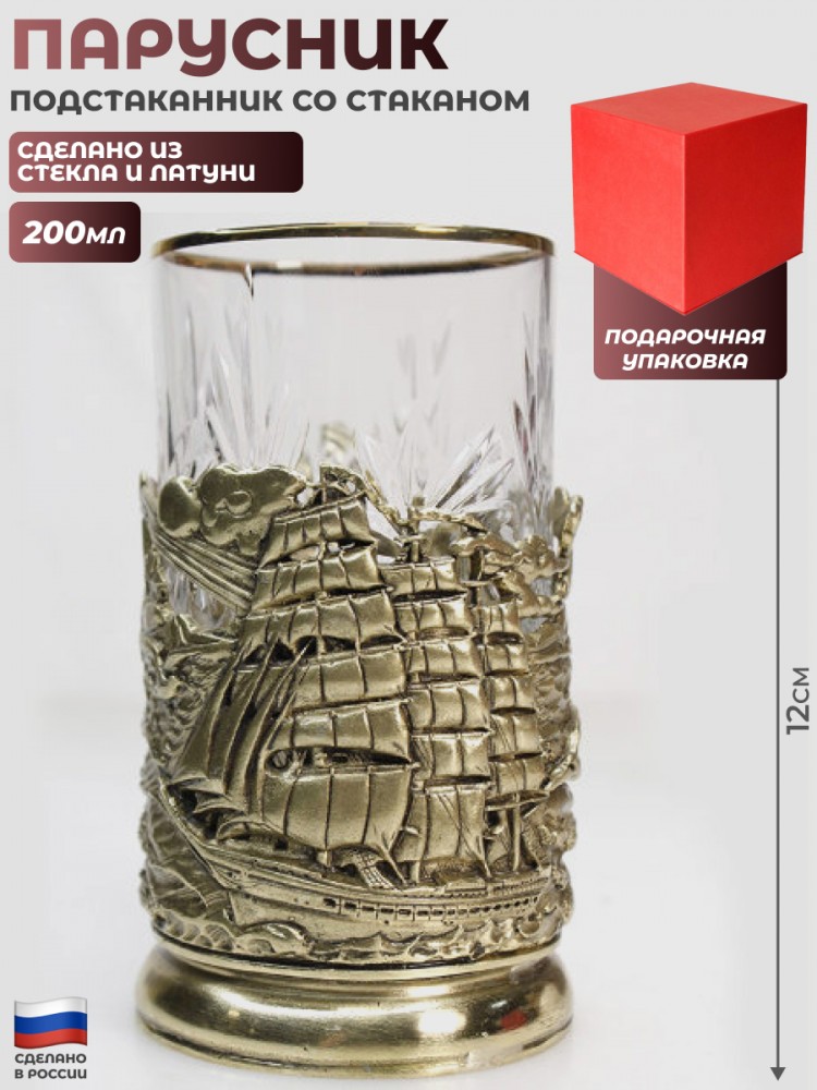 Эксклюзивный латунный подстаканник с мотивом парусника и включенным стаканом является выражением тонкого вкуса и любви к морской тематике.