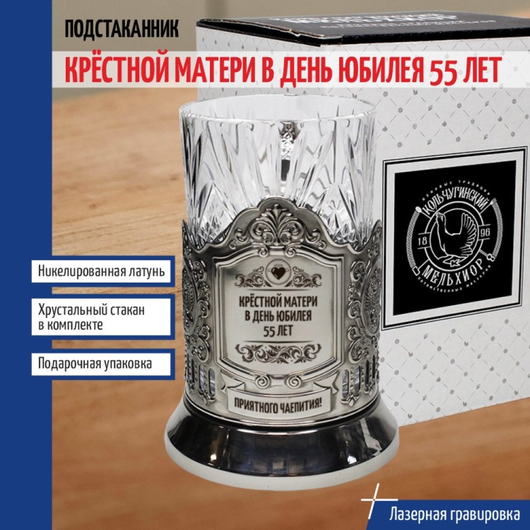 Подстаканник "Крёстной матери в день юбилея 55 лет" со стаканом - описание товара
