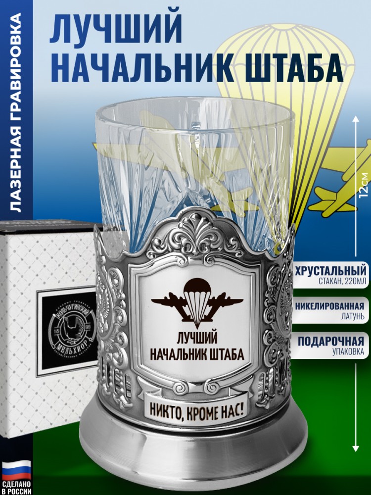 Подстаканник ВДВ "Лучший начальник штаба" со стаканом
