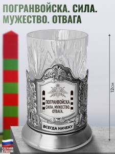 Подстаканник "Погранвойска. Сила. Мужество. Отвага" со стаканом (Кольчугино) - описание товара