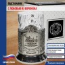 Комплектация: Подстаканник (никелированная латунь марки Л68), Стакан (Хрусталь, 220 мл), Подарочная коробка (15 х 12 х 12 см).