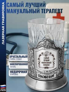 Комплектация: Подстаканник (никелированная латунь марки Л68), Стакан (Хрусталь, 220 мл), Подарочная коробка (15 x 12 x 12 см).