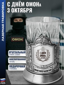 Комплектация: Подстаканник (никелированная латунь марки Л68), Стакан (Хрусталь, 220 мл), Подарочная коробка (15 х 12 х 12 см).