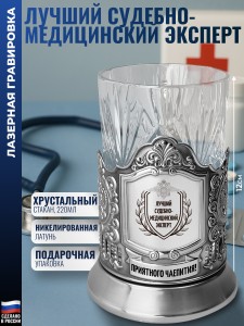 Комплектация: Подстаканник (никелированная латунь марки Л68), Стакан (Хрусталь, 220 мл), Подарочная коробка (15 х 12 х 12 см).