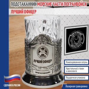 Лазерная гравировка нанесена на лицевую часть. Комплектация: Подстаканник (никелированная латунь марки Л68), Стакан (Хрусталь, 220 мл), Подарочная коробка (15 x 12 x 12 см). Производитель подстаканника: Кольчугинский мельхиор. Стакана: Бахметьевский завод. Высота подстаканника со стаканом: 12 см. Внешний диаметр подстаканника: 7,1 см. Внутренний диаметр подстаканника: 6,7 см. Диаметр наиболее широкой части стакана: 6,6 см. Объём: 220 мл. Вес: 180 г. Размер упаковки: 13 x 9 x 9 см. История подстаканников неразрывно связана с железнодорожным транспортом, где они вместе с граненым стальным стаканом были традиционным элементом сервировки в поездах с советских времен. Атрибут чайных встреч, который тесно связан с атмосферой путешествий и уютом СССР. Подарочный металлические подстаканник дополнит интерьер, служа практической функции, защищая руки от ожога и обеспечивая устойчивость в движении. Каждый фрагмент оформления изображения на железе выполнен методом художественно штамповки. Сувенир станет отличной памятной наградой за заслуги или победы, подходит для корпоративных и личных подарков на 23 февраля, юбилей, Новый год, день рождения и другие значимые события. Оригинальный подарок для мужчин разного возраста (папе, сыну, брату) или статуса (другу, любимому парню, коллеге от коллектива). Актуально в качестве новогоднего сюрприза мужу, отцу, коллеге, начальнику или юбиляру. Морчасти погранвойск обеспечивают охрану государственных границ на водных рубежах. Их задачи включают контроль за соблюдением режима территориальных вод и противодействие незаконной деятельности. Уместен как знак признания за службу по охране рубежей, обеспечению государственной безопасности и верность присяге. 9150