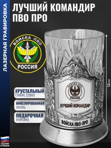 Комплектация: Подстаканник (никелированная латунь марки Л68), Стакан (Хрусталь, 220 мл), Подарочная коробка (15 х 12 х 12 см).