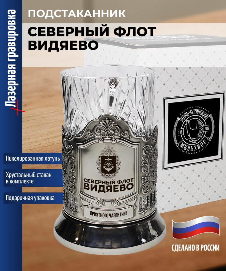 Подстаканник ВМФ "Северный флот. Видяево" со стаканом - описание товара