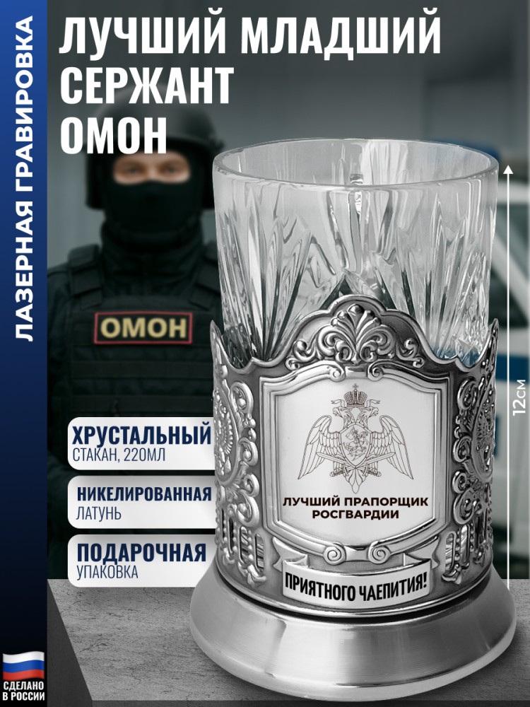 Подстаканник ОМОН "Лучший младший сержант" со стаканом - описание товара