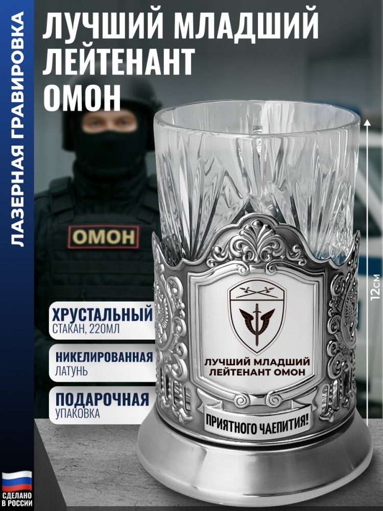 Подстаканник ОМОН "Лучший младший лейтенант" со стаканом - описание товара