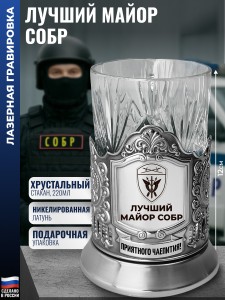Подстаканник СОБР "Лучший майор" со стаканом - описание товара
