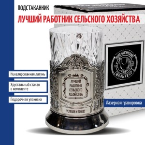 Комплектация: Подстаканник (никелированная латунь марки Л68), Стакан (Хрусталь, 220 мл), Подарочная коробка (15 х 12 х 12 см).