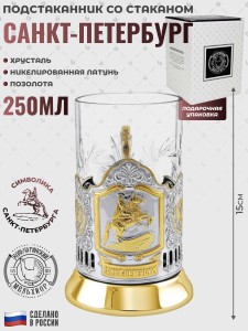 Комплектация: Подстаканник (высота 9,5 см, диаметр 7,2 см), Стакан (высота 11 см, диаметр 7 см, объём 250 мл), Подарочная коробка (15 х 11 х 11 см).