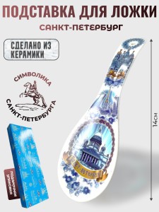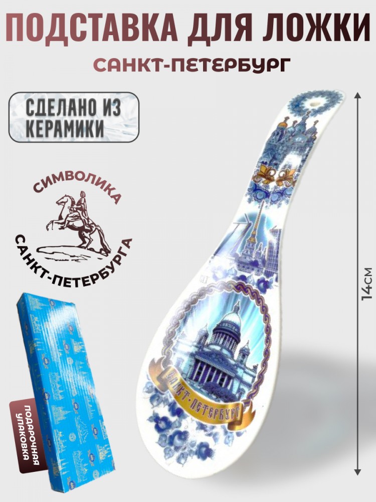 Керамическая подставка для ложки с традиционными Гжельскими узорами, вносит часть русской культуры в кухонный интерьер.