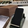 На фото в подставку вставлен телефон Iphone12 с чехлом