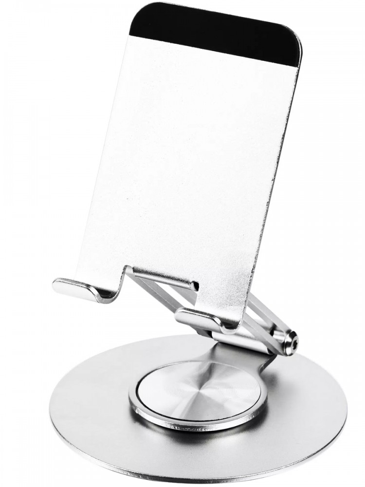 Складная серебристая подставка для телефона - удобный настольный аксессуар для дома и работы.