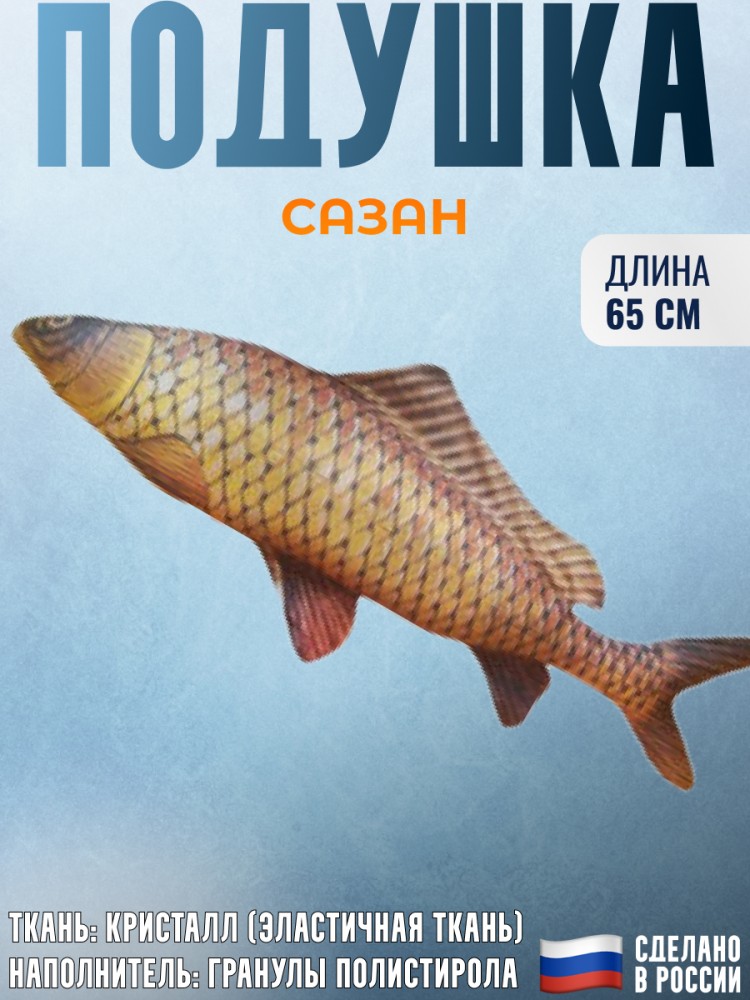 Обнимитесь с природой, благодаря подушке-игрушке "Сазан", сочетающей в себе уют и юмор. Идеальный выбор для любителей рыбалки и оригинального декора.
