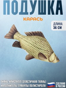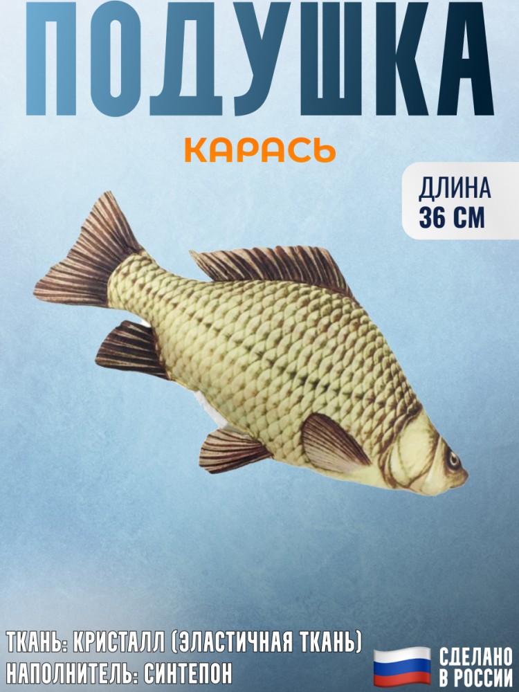 Мягкая и уютная подушка-игрушка в форме карася, добавит комфорта в интерьер и станет отличным подарком для любителей рыбалки.