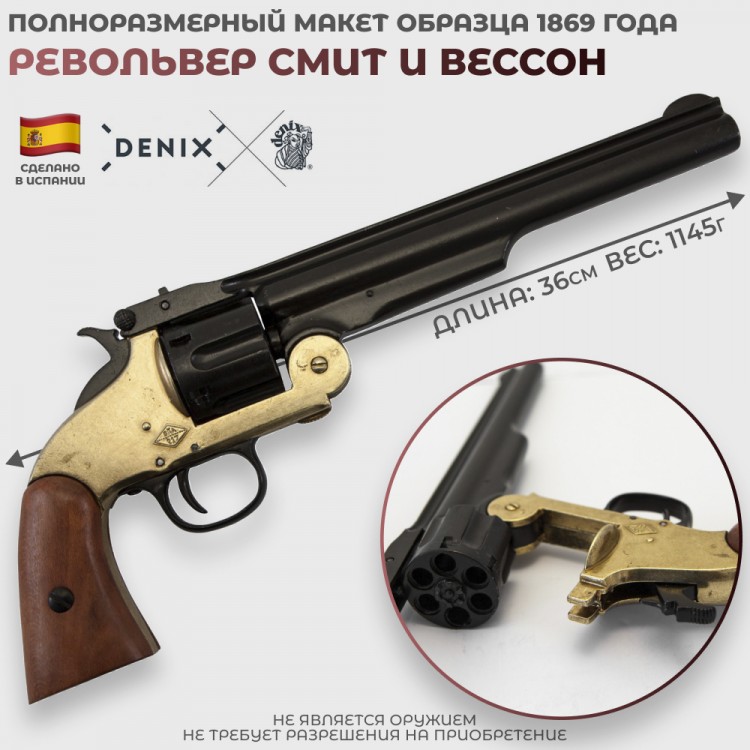 Большинство изделий фирмы Denix, в том числе, копия револьвера Смит Вессон сделаны с использованием металла типа Zamak. Zamak - разновидность цинковых сплавов с добавлением алюминия, магния и меди. Часто используются в литейном производстве и отличаются низкой температурой плавления, достаточной прочностью и хорошими литьевыми характеристиками. Некоторые сплавы семейства Zamak по прочности сравнимы с малоуглеродистой сталью.