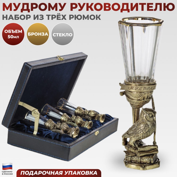 | Комплектация | Три рюмки-лафитника, Подарочный футляр |