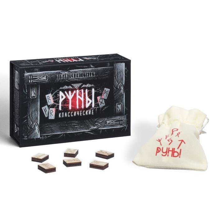 Комплект из 24 классических скандинавских рун в текстильном мешочке для гадания или медитации, представляющий древнее наследие.
