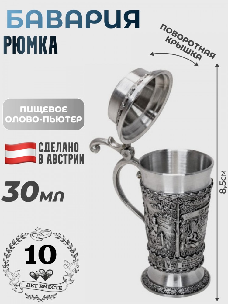 Эта миниатюрная рюмка, выполненная в виде кружки из олова, станет оригинальным дополнением вашей коллекции посуды и великолепным подарком для любителей необычных аксессуаров.