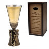 Элегантная рюмка с колокольчиком в ножке и стихотворением Лермонтова на крышке шкатулки, выполненная из латуни и бронзы, упакованная в деревянный футляр, станет уникальным подарком.