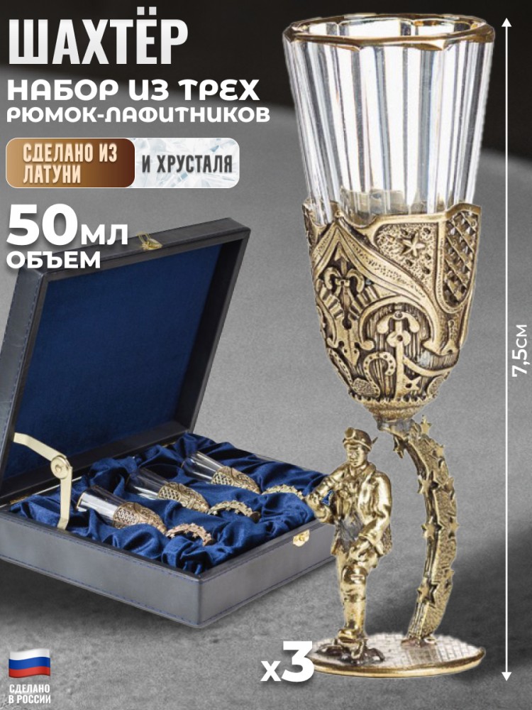 | Комплектация | Три рюмки-лафитника, Подарочный футляр |