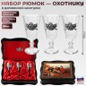 Комплектация: Три лафитника, Деревянная шкатулка с изображением охотников.