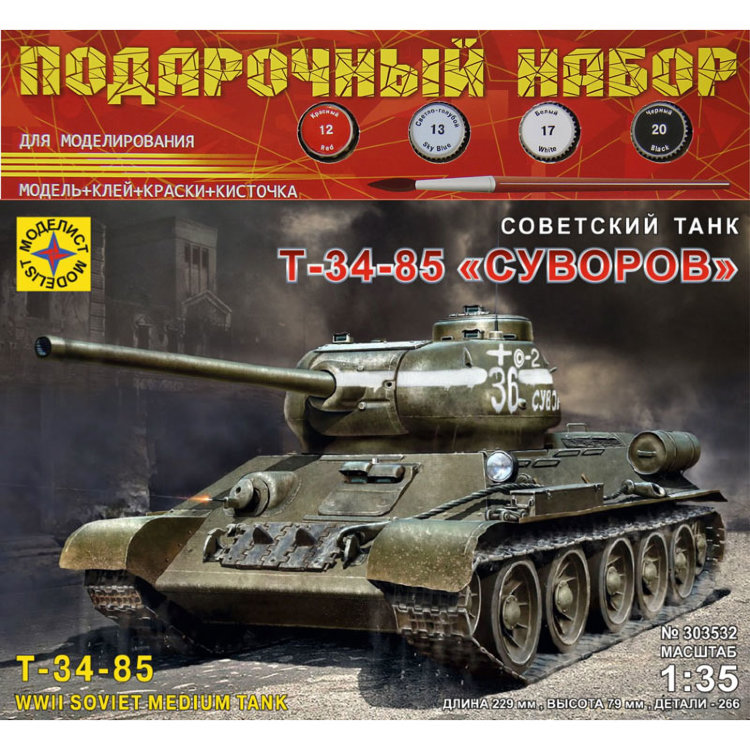 Советский танк Т-34-85 Суворов" оживит историю на вашем столе. Соберите, окрасьте и погрузитесь в легендарные битвы.