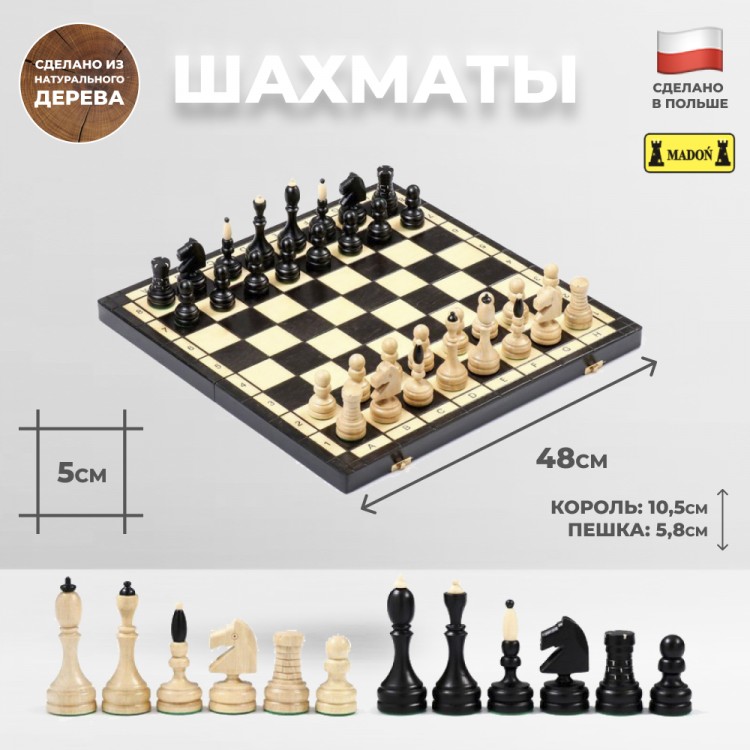 | Комплектация | Деревянная доска, Резные шахматные фигуры |