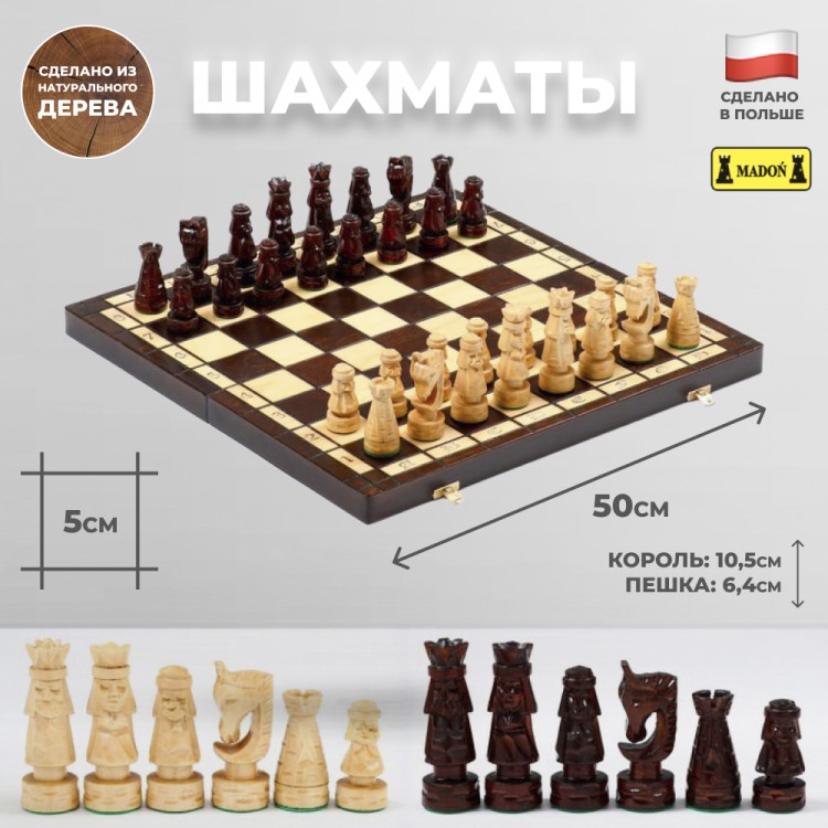 | Комплектация | Деревянная доска, Резные шахматные фигуры |