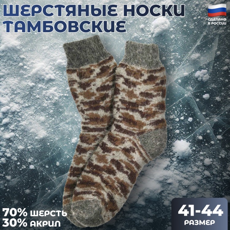 Практичные и надёжные шерстяные носки с камуфляжным рисунком для активных людей.