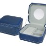 Элегантная шкатулка для украшений с замшевым вкладышем и зеркалом, выполненная в синем цвете под кожу аллигатора, добавит шик вашему интерьеру.