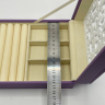 Фиолетовая шкатулка "Кружева" с элементами из дерева, текстиля и металла, а также прозрачным пластиком, станет идеальным местом для хранения ваших украшений, добавляя элегантности любому интерьеру.