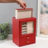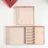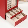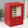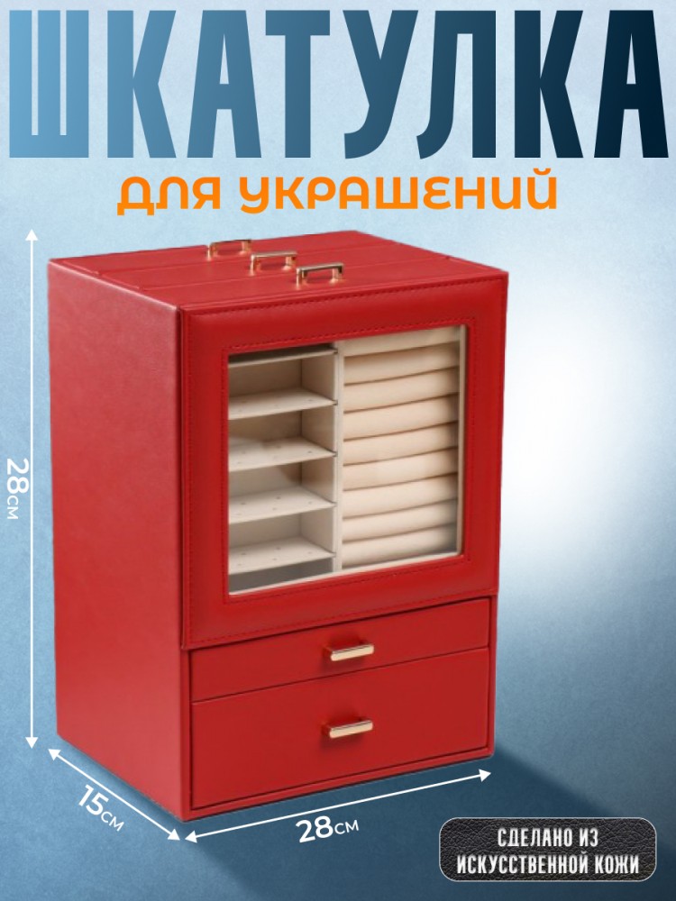 Элегантная шкатулка для украшений бордового цвета с элементами из искусственной кожи и дерева, где каждое украшение найдет свое место.