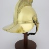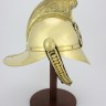 Макет шлема пожарных команд из металла - массивный символический аксессуар для тематического интерьера, музейной экспозиции или подарочной коллекции, посвящённой профессии, подчёркивающий стойкость, мужество и уважение к профессии спасателя.