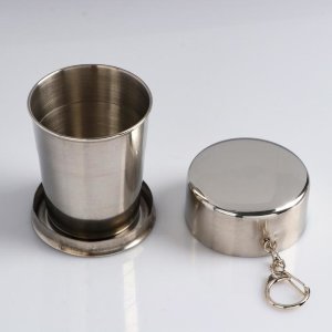 С помощью металлического карабина складной стакан можно закрепить на походном рюкзаке или на ремне.