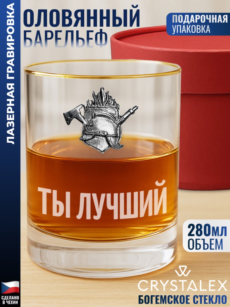 Объем: 280 мл. Страна производства бокала: Crystalex CZ s.r.o. (Богемия Чехия). Материал: Стекло Барельеф из олова произведен в России, фабрикой оловянной миниатюры. Упаковка: Подарочная коробка. Декор: Отводка золотом (изделия с декором следует мыть вручную, избегая резких перепадов температуры). Вес: 274 гр. Размер: 8,8 x 8 x 8 см. Можно мыть в посудомоечной машине: Нет. Высота: 88,2 мм. Диаметр у ободка: 79,5 мм. Диаметр внутренней части: 77,8 мм. Не использовать в микроволновой печи. Лазерная гравировка нанесена с одной стороны (как на фото, под гербом). Подарочный дегустационный стакан для виски с золотой окантовкой - элегантный подарок для ценителей стиля и крепких напитков. Стеклянный бокал с гравировкой и гербом Олд фешен (Old fashioned) идеально подходит как для повседневного использования, так и для особенных событий. Оригинальный подарок, который подойдет на любой праздник или награждение. Он станет достойной памятной наградой за победы и достижения от коллектива на память. Сувенир актуален в качестве подарка мужу, взрослому родственнику (отцу, дедушке) или для сослуживца. Актуально на 23 февраля, дембель или день рождения. Практичное решение для сотрудника МЧС - спасателя, пожарного или ликвидатора чрезвычайных ситуаций, готового прийти на помощь в любых условиях. Подходит для специалиста, участвующего в эвакуациях, тушении пожаров или ликвидации последствий техногенных катастроф. Актуален ко Дню спасателя Российской Федерации (27 декабря), при награждении, завершении службы или как символ признания за храбрость, самоотверженность и девиз настоящих героев: "Предотвратить. Спасти. Помочь". 4755