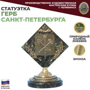 Небольшая статуэтка с гербом Санкт-Петербурга, выполненная из бронзы и змеевика, станет украшением любого интерьера.