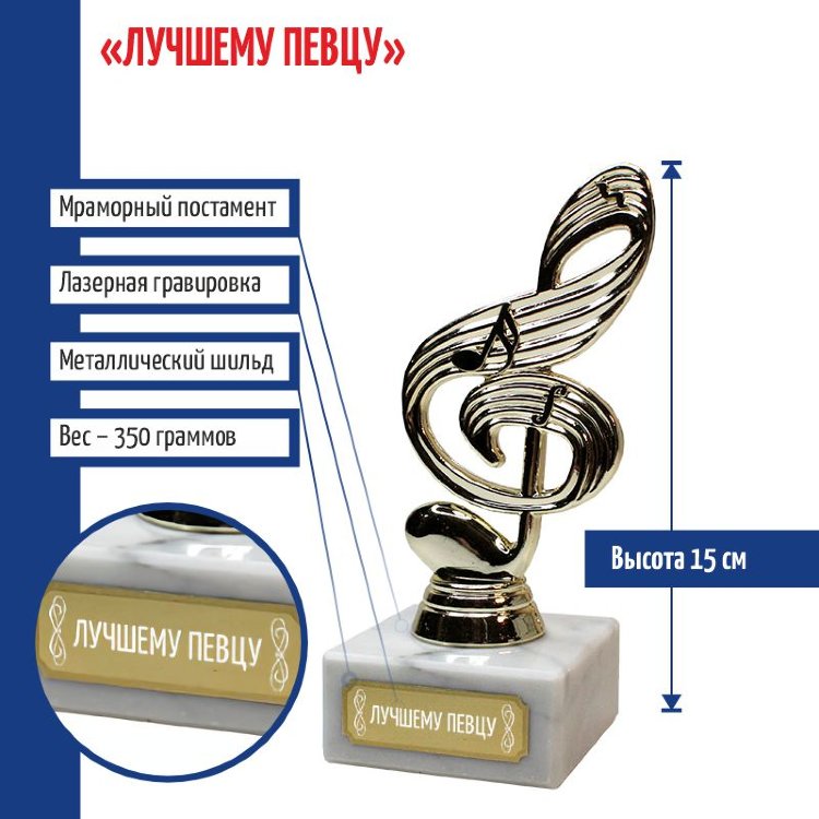 Фигурка соль-ключа акцентирует внимание на артистизме, таланте и участии в культурных событиях. Сувенирная награда фиксирует вклад в искусство и символизирует уважение к музыке.