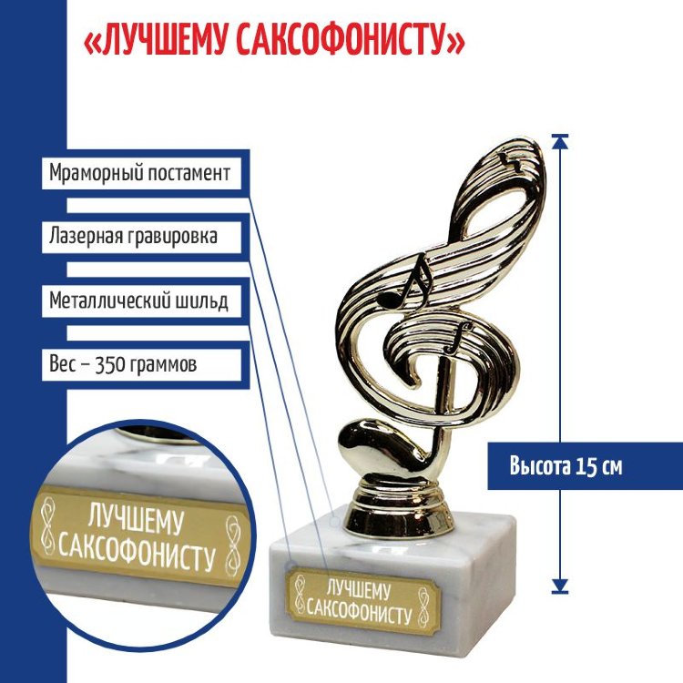 Фигурка соль-ключа акцентирует внимание на артистизме, таланте и участии в культурных событиях. Сувенирная награда фиксирует вклад в искусство и символизирует уважение к музыке.