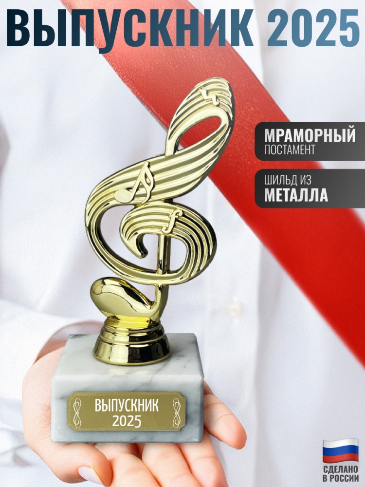 Наградная статуэтка в виде скрипичного ключа используется как трофей за достижения в музыкальной деятельности. Подходит для оформления сцены, выставок и творческих пространств.