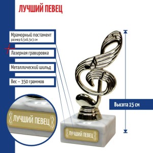 Фигурка соль-ключа акцентирует внимание на артистизме, таланте и участии в культурных событиях. Сувенирная награда фиксирует вклад в искусство и символизирует уважение к музыке.