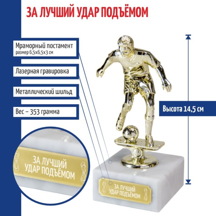 Статуэтка Футбол "За лучший удар подъёмом" на мраморном постаменте (14,5 см) - описание товара