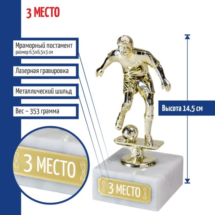 Статуэтка Футбол "3 место" на мраморном постаменте (14,5 см) - описание товара