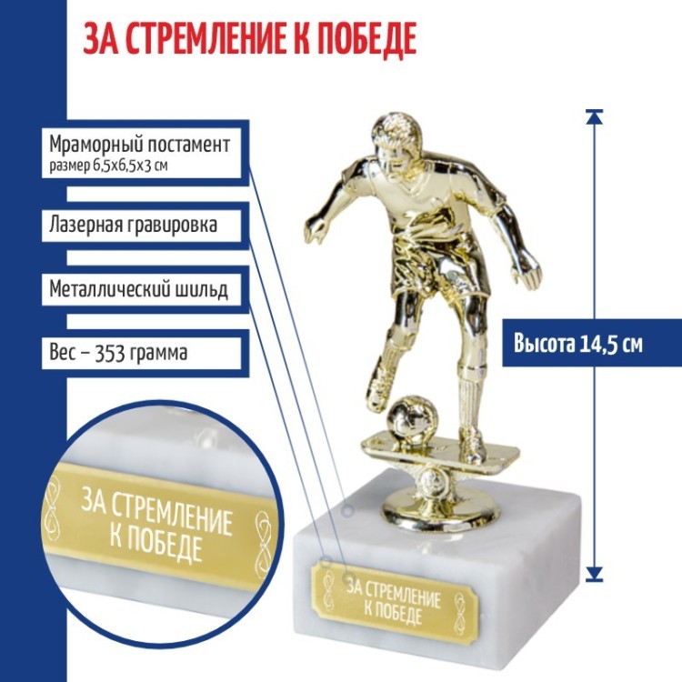 Статуэтка Футбол "За стремление к победе" на мраморном постаменте (14,5 см) - описание товара