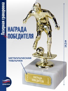 Наградная статуэтка с фигурой футболиста и мячом - используется для вручения участникам турниров, лиг и матчей, а также для оформления спортивных интерьеров.