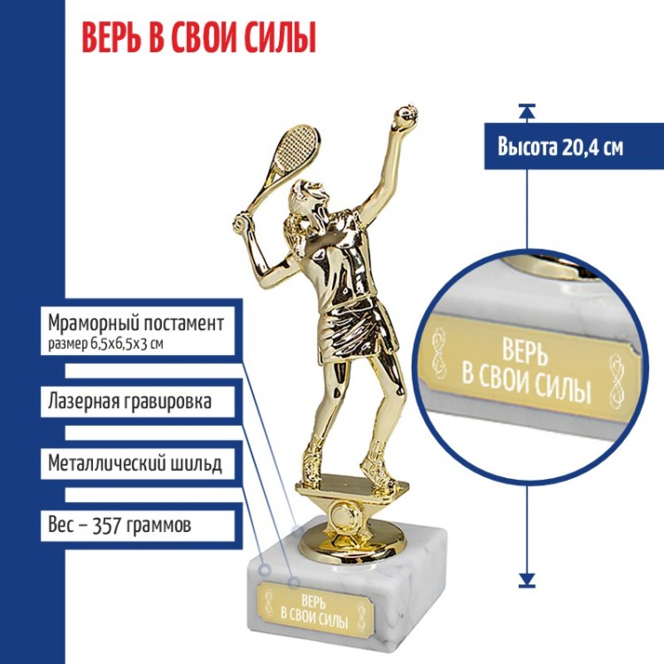 Статуэтка Теннисистка "Верь в свои силы" на мраморном постаменте (20,4 см) - описание товара