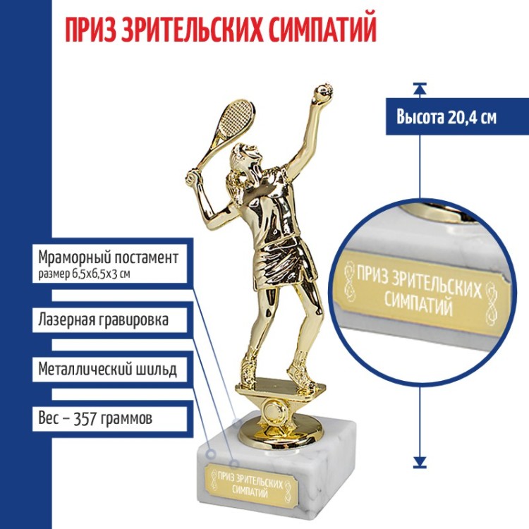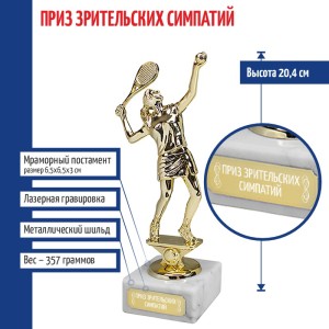 Статуэтка Теннисистка "Приз зрительских симпатий" на мраморном постаменте (20,4 см) - описание товара