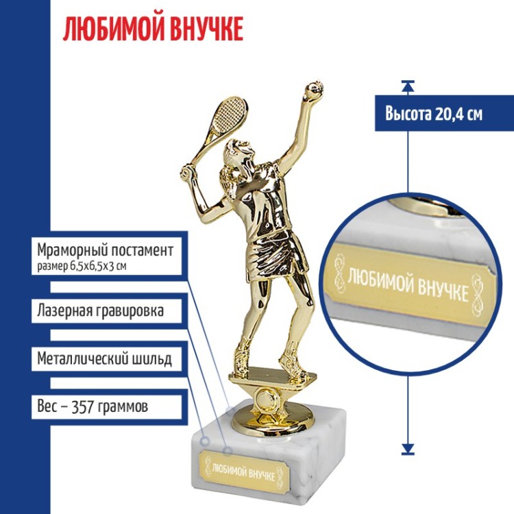 Статуэтка Теннисистка "Любимой внучке" на мраморном постаменте (20,4 см) - описание товара